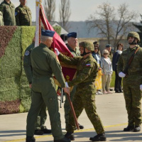 Nasledovalo symbolické odovzdanie a prevzatie bojovej zástavy 81. krídla Sliač medzi odchádzajúcim a nastupujúcim veliteľom krídla.