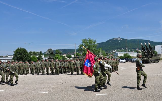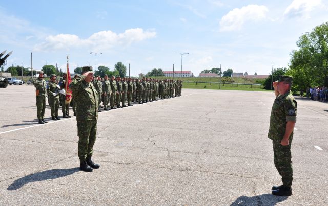 Po prečítaní personálnych rozkazov sa uskutočnil samotný slávnostný akt - symbolické odovzdanie a prevzatie bojovej zástavy brigády medzi bývalým a nastupujúcim veliteľom.