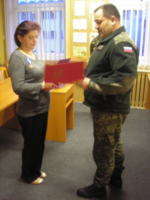 Slávnostný nástup bol ukončený udelením Pamätnej medaily Náčelníka generálneho štábu Ozbrojených síl Slovenskej republiky III. stupňa zamestnankyni Alene BIBKOVEJ, ktorá sa na Silvestra dožíva významného životného jubilea.