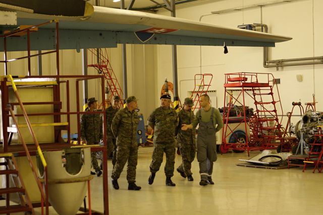 Po úvodnej prezentácii pokračovala návšteva prehliadkou priestorov dopravného krídla, kde si náčelník Generálneho štábu prezrel budovu riadiacej veže, techniku vojenskej hasičskej jednotky , stojánku a hangáre s leteckou technikou.