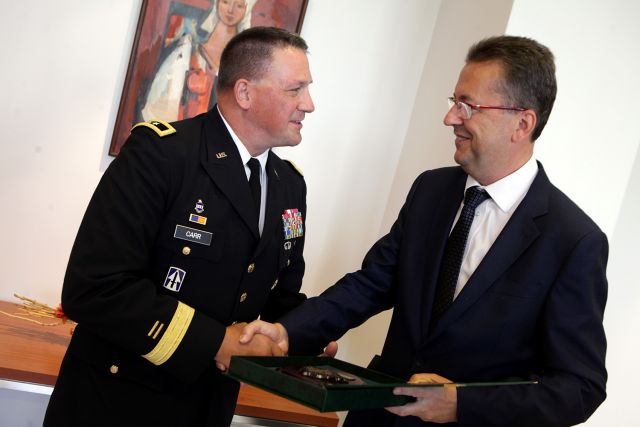 Na pôde ministerstva obrany dnes náčelník Generálneho štábu OS SR generálporučík Milan Maxim privítal nového veliteľa Národnej gardy štátu Indiana (NGI) generálmajora Courtney P. Carra, ktorý v máji tohto roka vo funkcii veliteľa NGI vystriedal generálmajora Martina R. Umbargera.